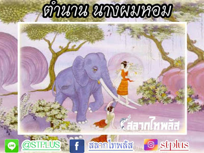 สลากไทพลัส กองสลากไท เนื้อเรื่อง นางผมหอม เป็นนิทานพื้นบ้านอีสานที่เล่าสืบต่อกันมาช้านานว่า มีหญิงสาวคนหนึ่งอาศัยอยู่ในหมู่บ้านแห่งหนึ่งใกล้บริเวณเขาภูหอ (ภูหอเป็นภูเขาในตำบลภูหอ อำเภอภูหลวง จังหวัดเลย) วันหนึ่งได้ไปเที่ยวป่ากับเพื่อนเกิดพลัดหลง แล้วได้ไปดื่มน้ำที่รอยเท้าช้าง เมื่อกลับมาถึงบ้าน นางได้ตั้งท้องคลอดลูกเป็นผู้หญิง ผมมีกลิ่นหอมนางจึงตั้งชื่อลูกว่า “นางผมหอม” ต่อมานางได้ไปเที่ยวป่าอีกครั้งและเกิดพลัดหลง ครั้งนี้นางได้ไปดื่มน้ำที่รอยเท้าวัวป่าเกิดตั้งท้องอีกคลอดออกมาเป็นหญิงตั้งชื่อว่า “นางลุน” ตอนเด็กๆทั้งสองถูกเพื่อนล้อเสมอว่าเป็นลูกไม่มีพ่อ แม่จึงเล่าเรื่องราวทุกอย่างให้ฟัง พอโตขึ้นนางผมหอมอธิฐานขอให้ฝันถึงพญาช้าง วันรุ่งขึ้นได้ขอแม่ไปเที่ยวป่ากับน้อง ทั้งสองไปเจอพญาช้าง พญาช้างจึงพิสูจน์ความจริงว่าใช่ลูกตัวเองหรือไม่ จึงอธิฐานว่าใครเป็นลูกให้ปีนขึ้นมาบนหลังตนได้ ถ้าไม่ใช่ก็ปีนไม่ได้ นางผมหอมปีนขึ้นได้ แต่นางลุนปีนไม่ได้จึงถูกพญาช้างเหยียบตาย